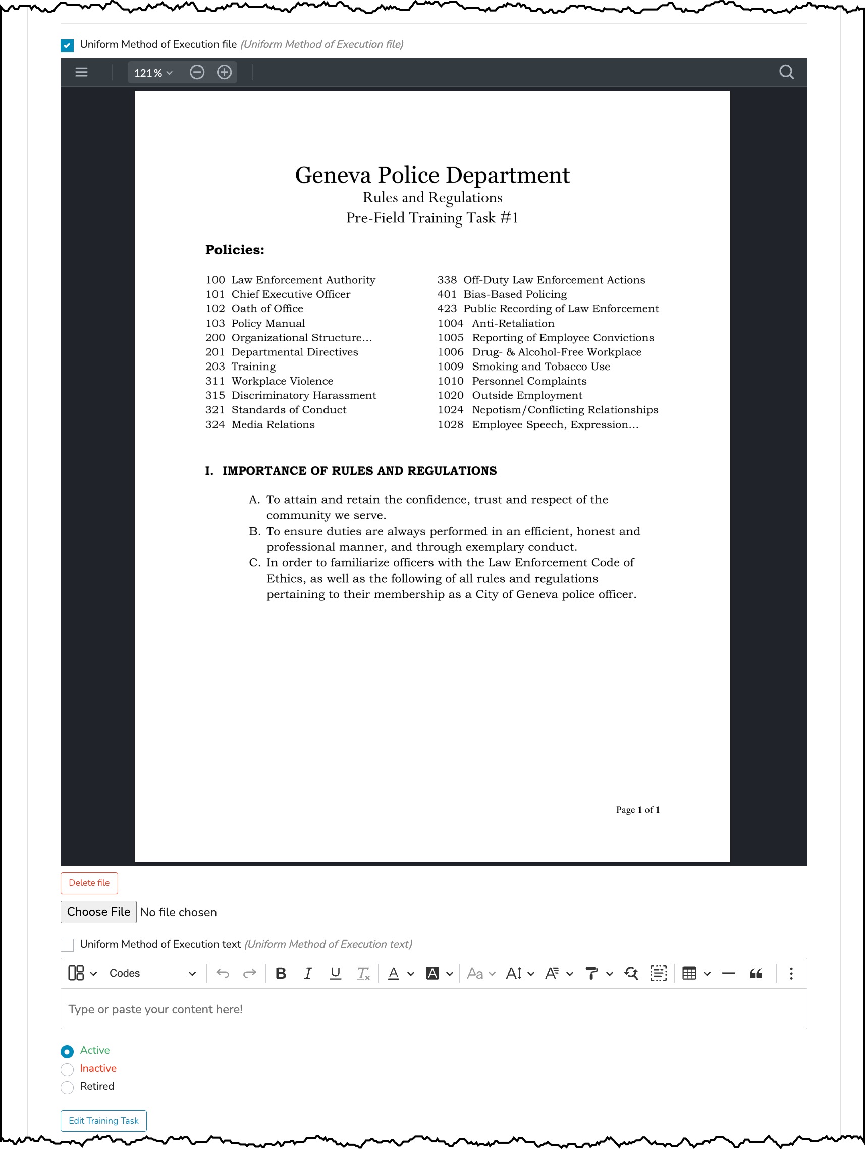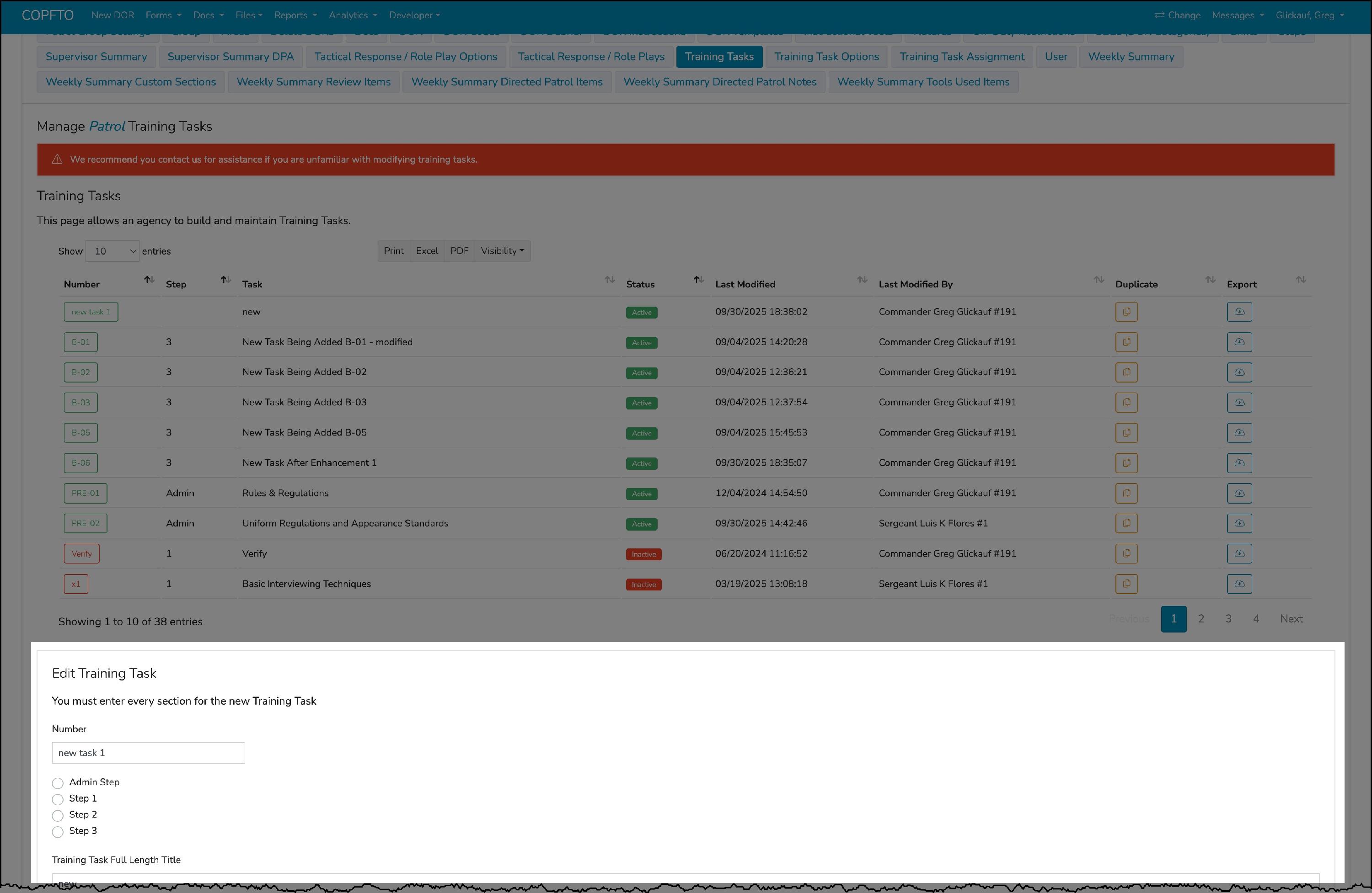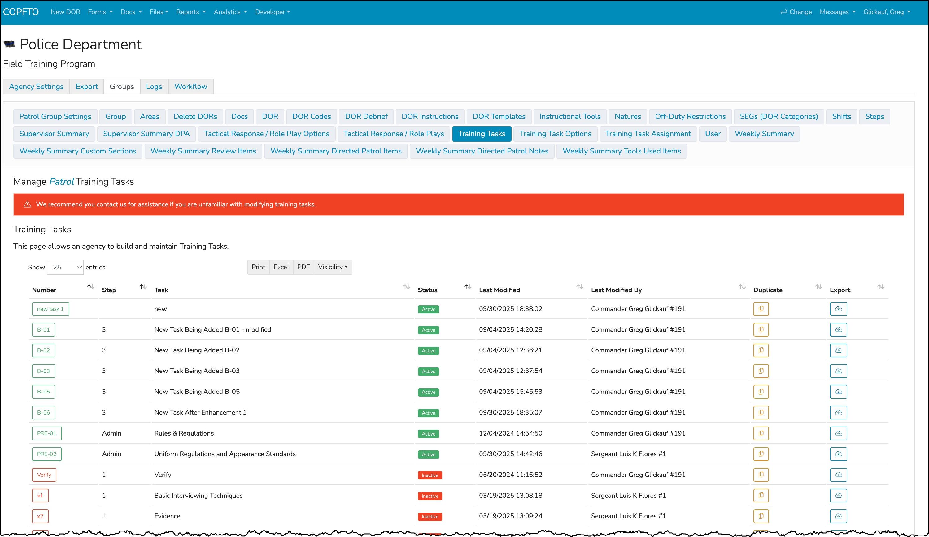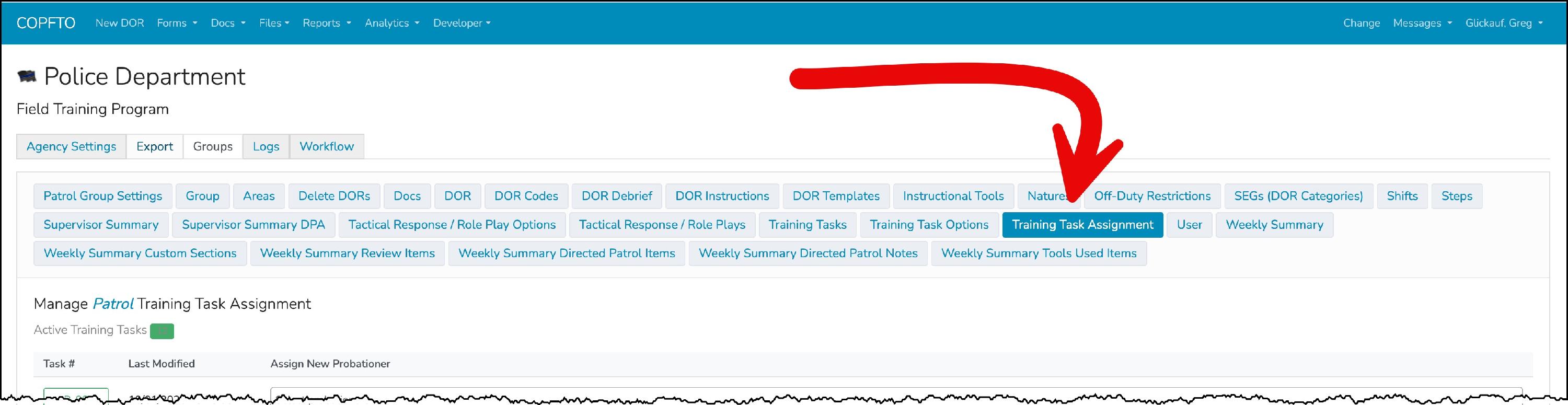 COPFTO ensures that training task records remain historically accurate for every probationer, even if tasks are later modified or replaced. This accuracy is preserved because training tasks are assigned to probationers at the time they are launched into the program. We walk through the initial assignment process for new probationers in our article entitled, Setting Up New Probationer (link at the bottom of this article)