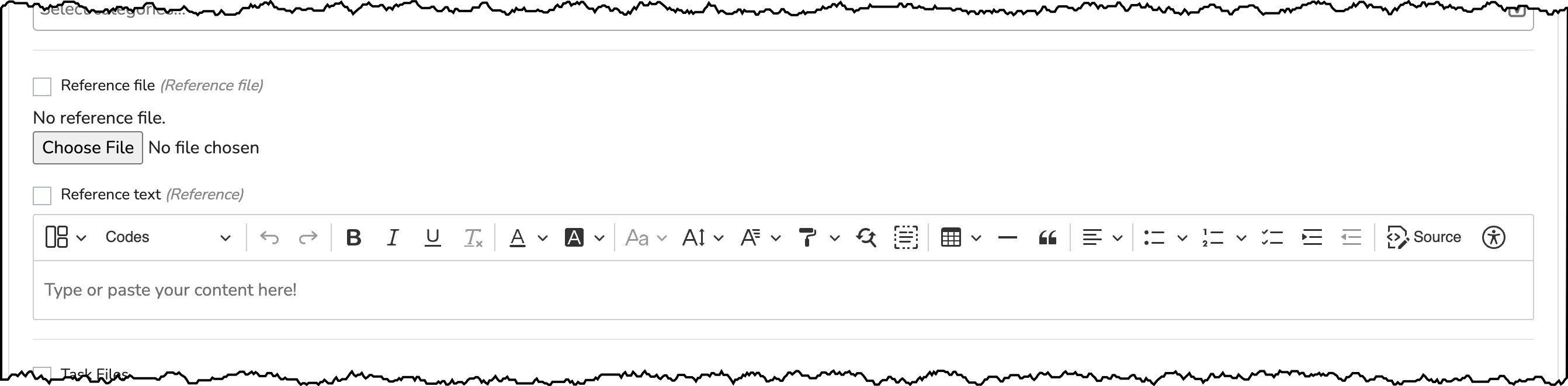 - Optionally, upload any Files that are needed while working on this task. The files will appear above the task .docx or .pdf document. Files will also be exported with the task at the end of the program.