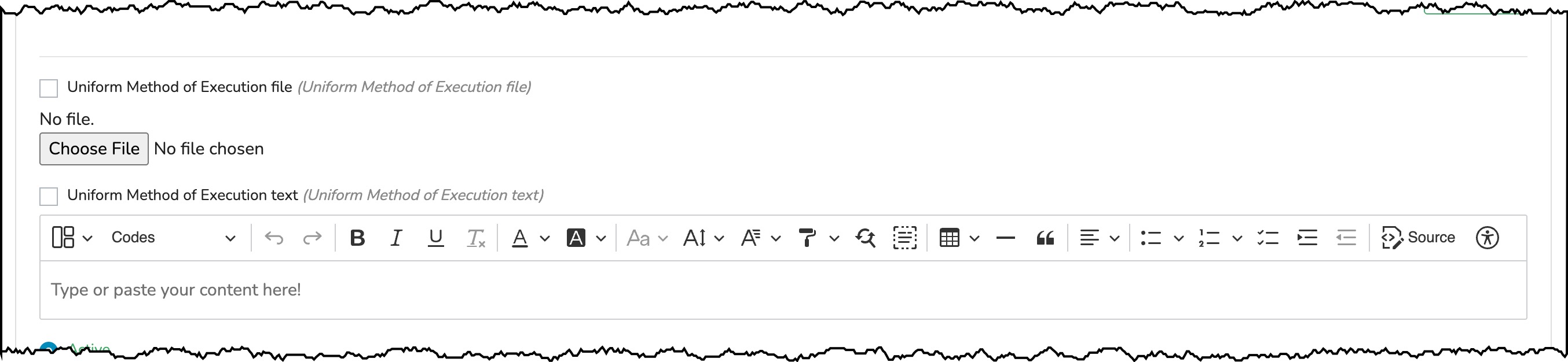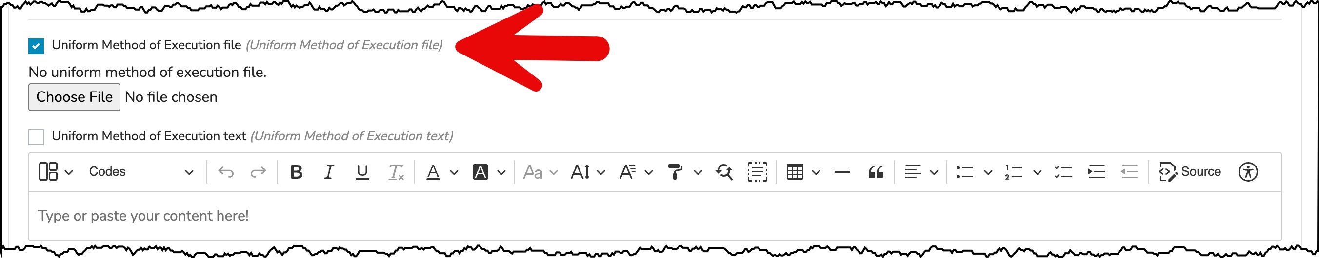 Check the box Uniform Method of Execution file. (checking the box makes this section visible on the front end view of the task)